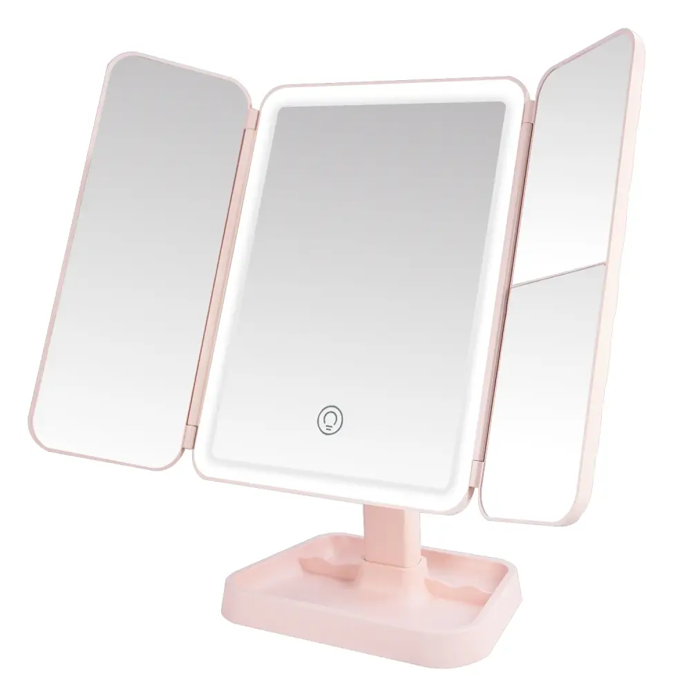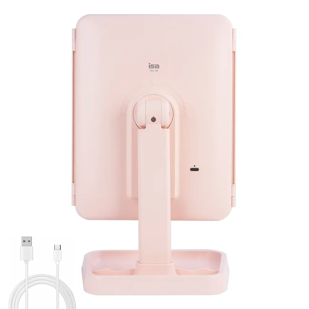 Настольное зеркало для макияжа с подсветкой ML-04 ISA розовое