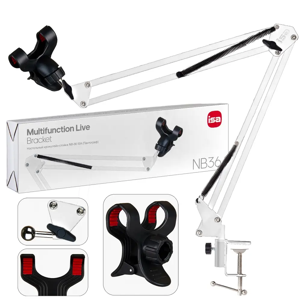 Настольный кронштейн-стойка для телефона NB-36 ISA (Пантограф) БЕЛЫЙ (28 шт/кор)