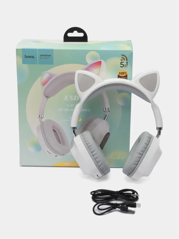 Наушники беспроводные полноразмерные светящиеся с ушками Hoco ESD13, белые