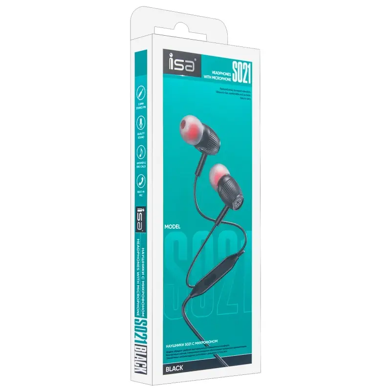 Наушники ISA S021 с микрофоном черные