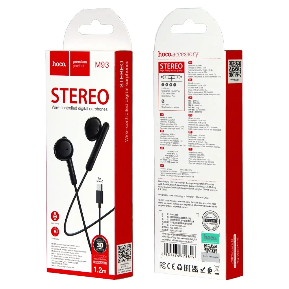 Наушники M93 Type-C HOCO Черные
