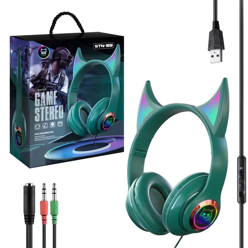 Наушники с подсветкой STN-169 Green Jack 3.5mm