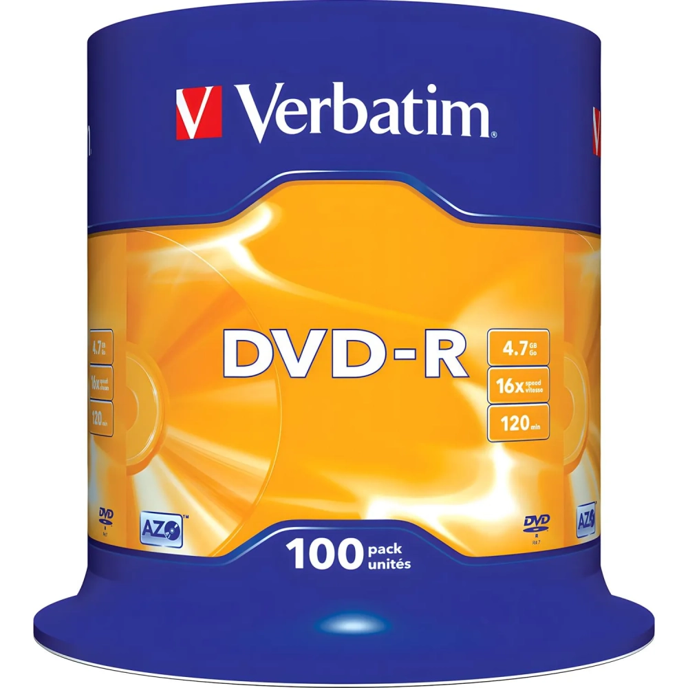 Носители информации DVD-R, 16x, Verbatim Azo Matt Silver, Cake/100, 43549