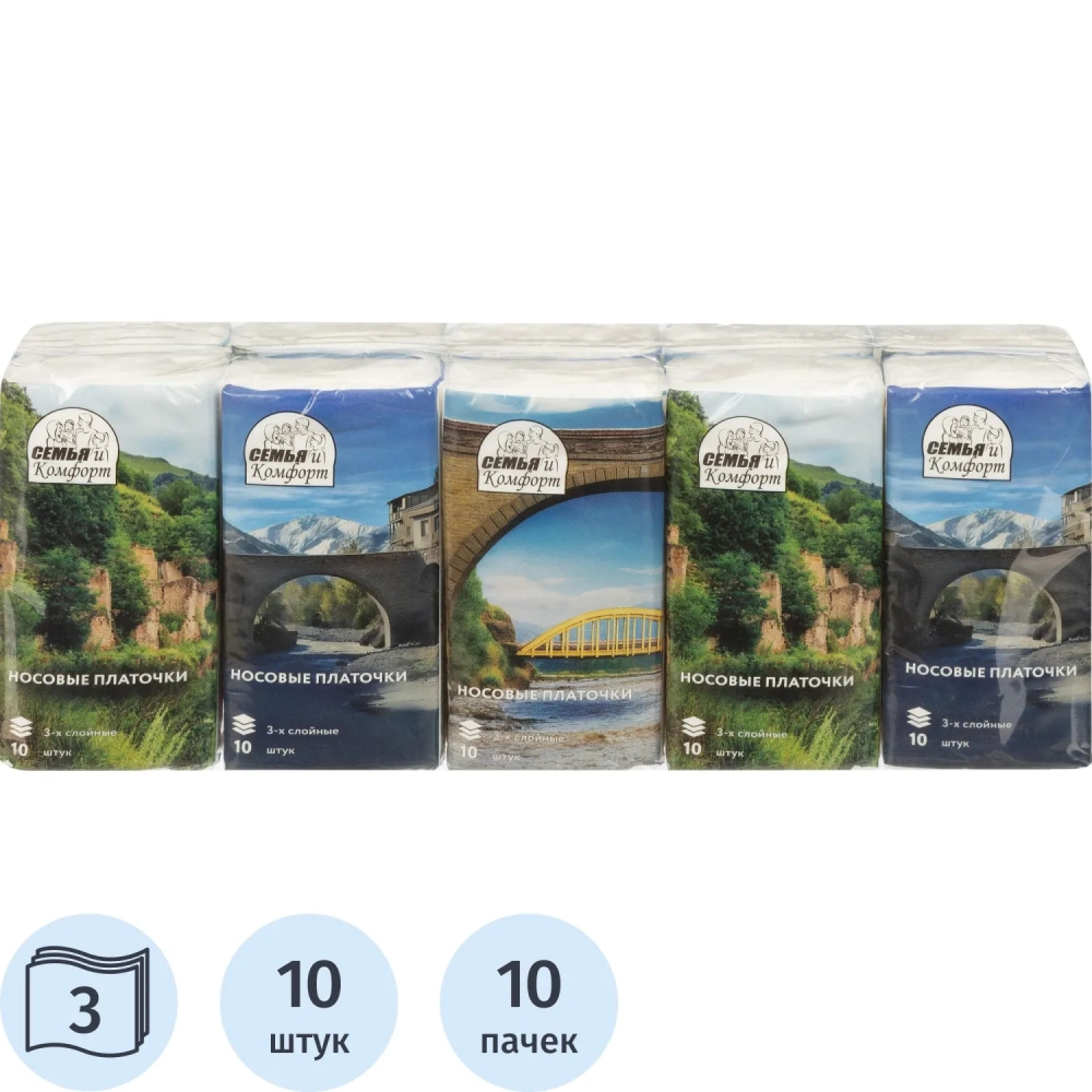 Носовые платочки Семья и Комфорт белые 3-сл. 10лх10пач/уп арт. 150