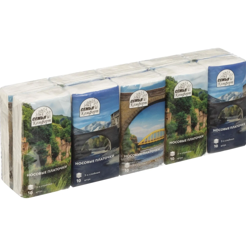 Носовые платочки Семья и Комфорт белые 3-сл. 10лх10пач/уп арт. 150