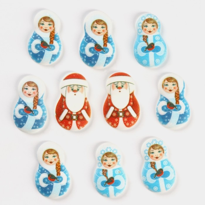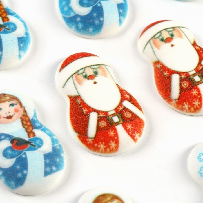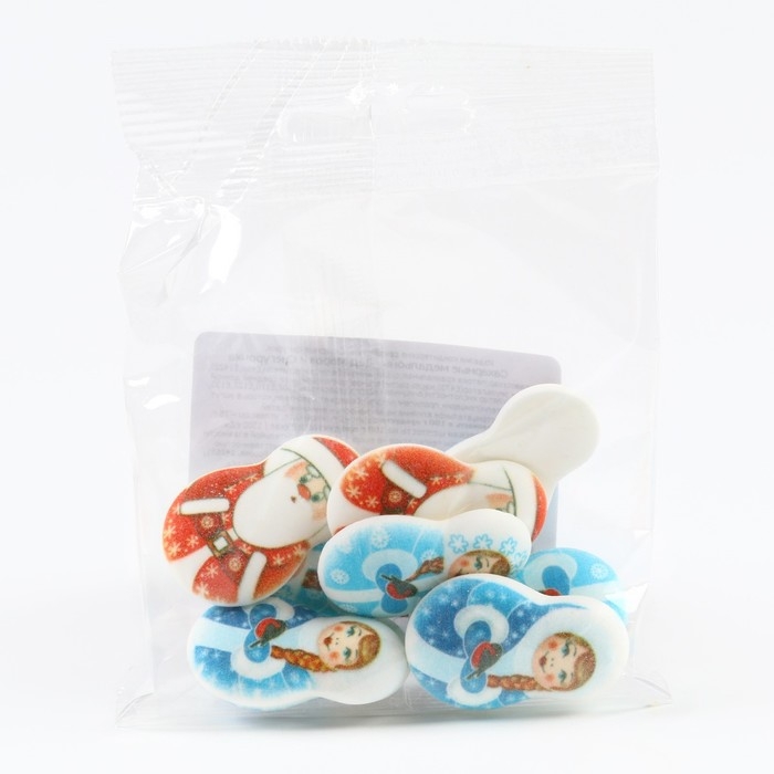 Новый год! Посыпка медальоны сахарная с картинкой микс: «Дед Мороз и Снегурочка», для декора капкейков, торта, напитков, 20 гр