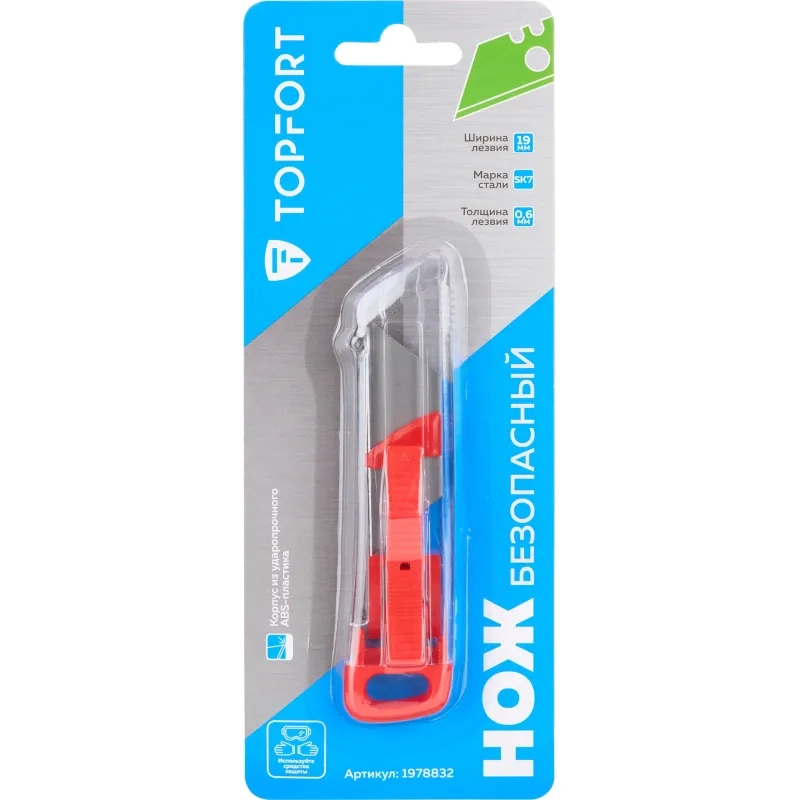 Нож безопасный Topfort с фиксатором лезвия 19 мм