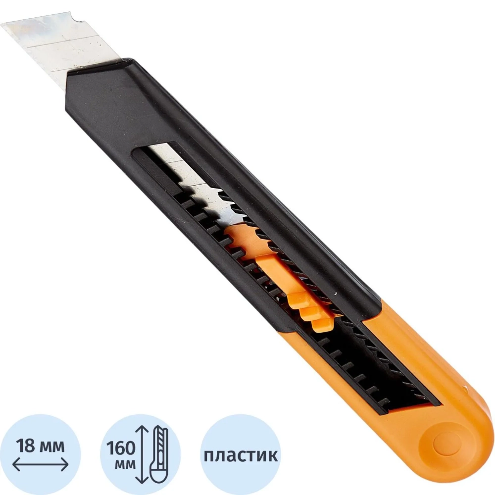 Нож канцелярский 18 мм Альфа, с фиксатором, пластик, цвет оранжевый