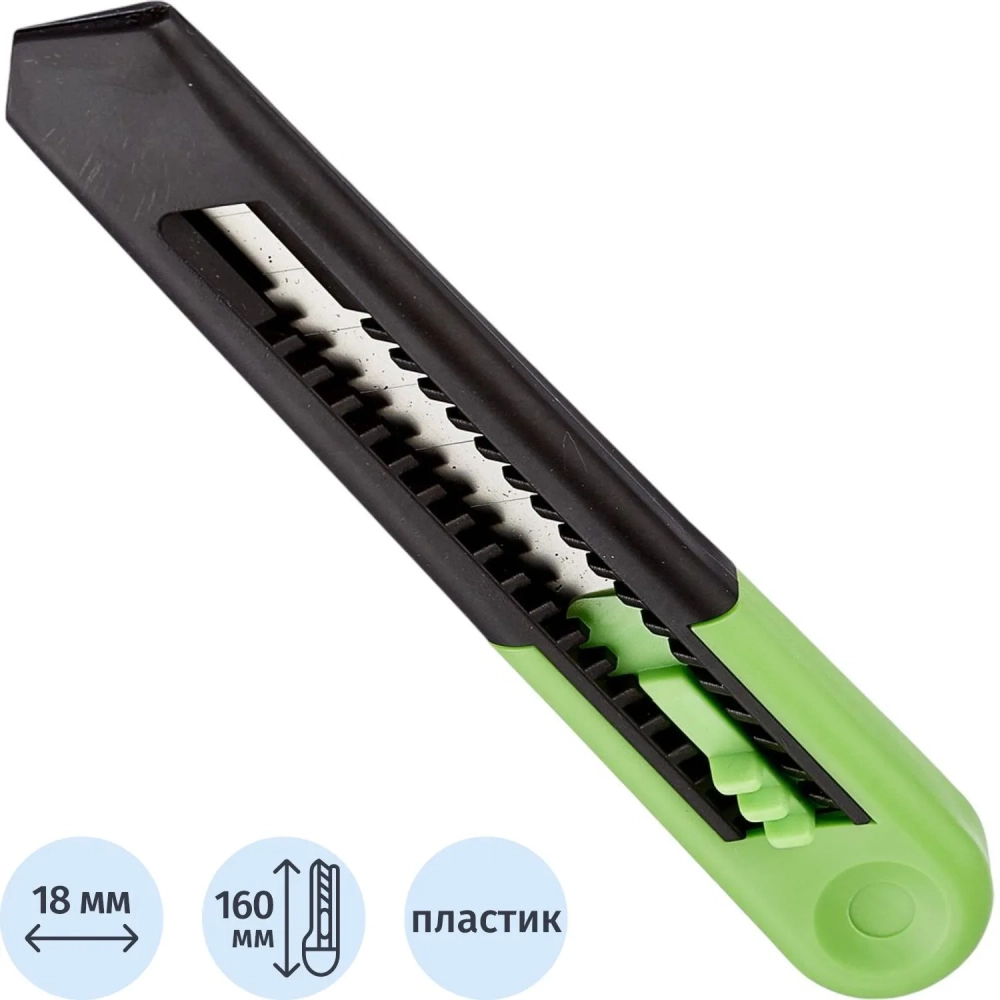 Нож канцелярский 18 мм Альфа, с фиксатором, пластик, цвет салатовый