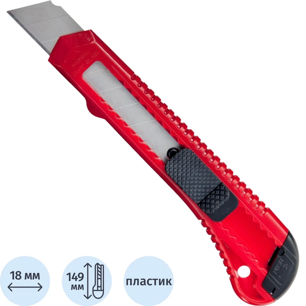 Нож канцелярский 18 мм Attache с фиксатором, полибег, цв.красный