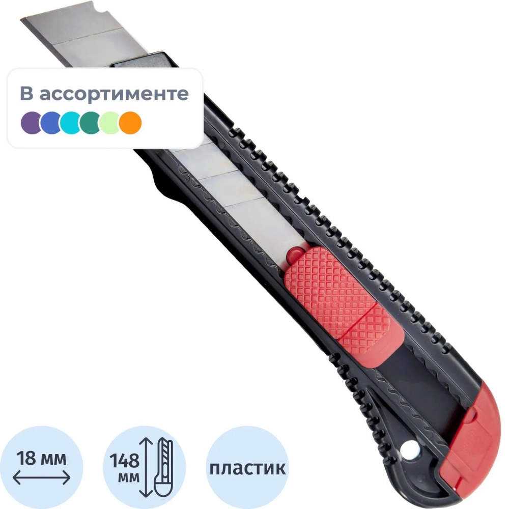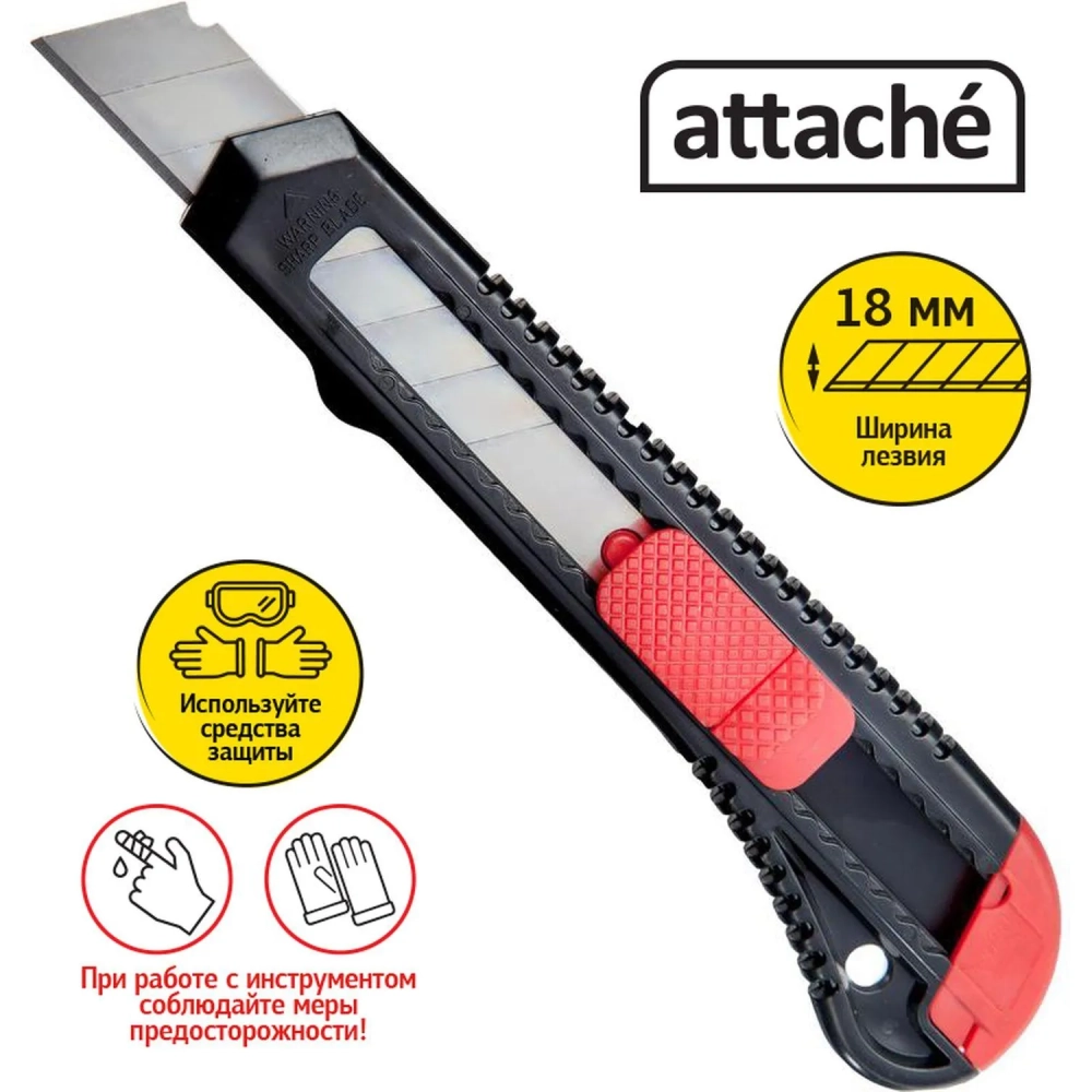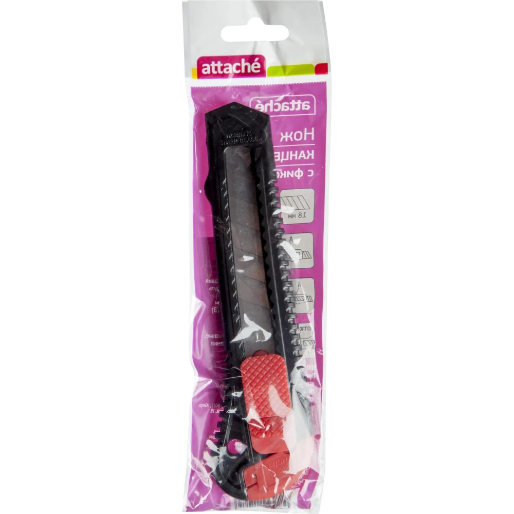 Нож канцелярский 18мм Attache чёрный, цв. фиксатора в ассорт.