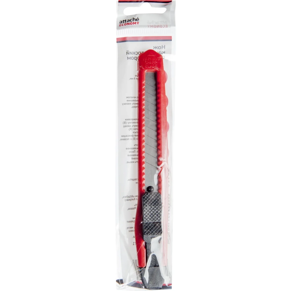 Нож канцелярский 9 мм Attache с фиксатором, полибег, цв. в ассорт