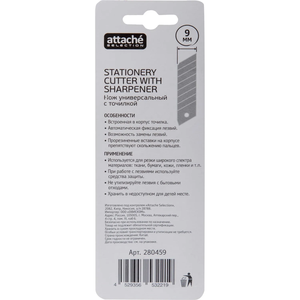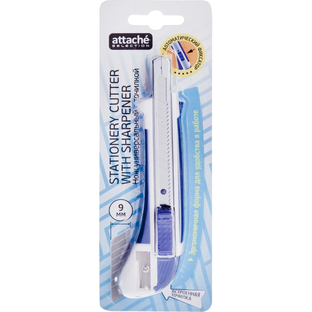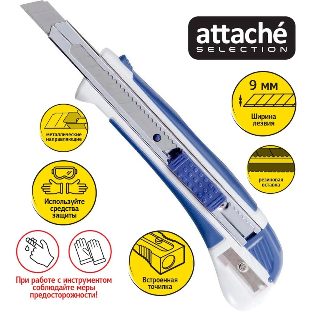 Нож канцелярский 9мм Attache Selection с антискольз.вставками иточилкой