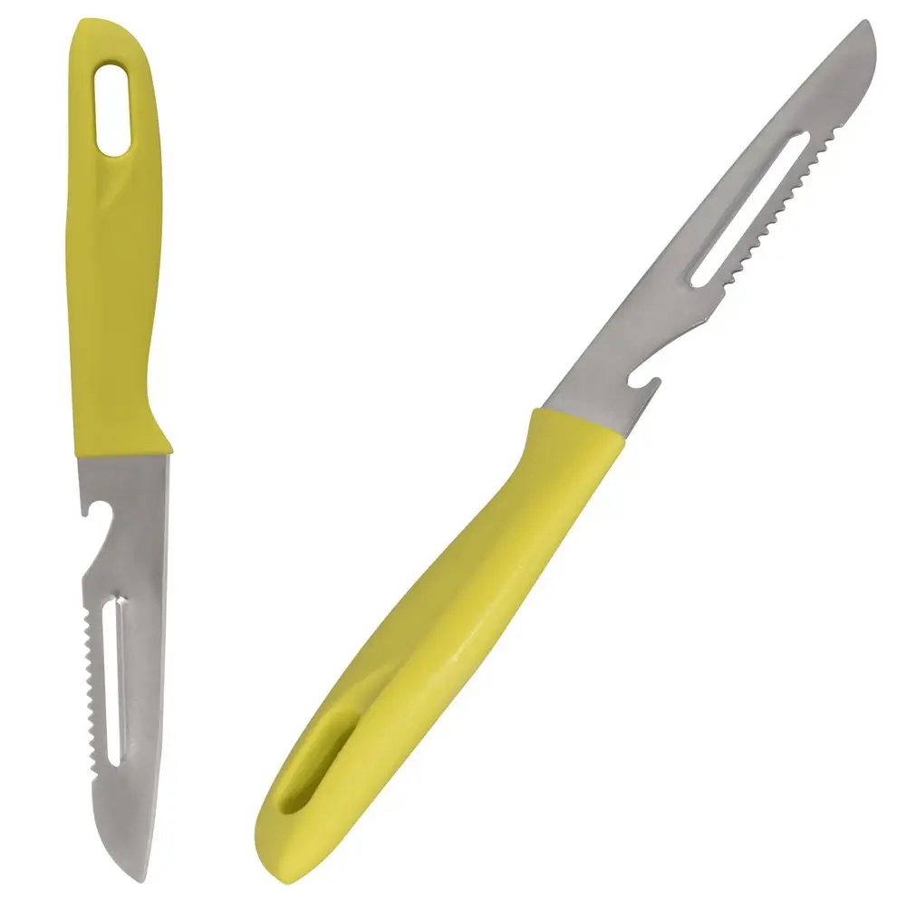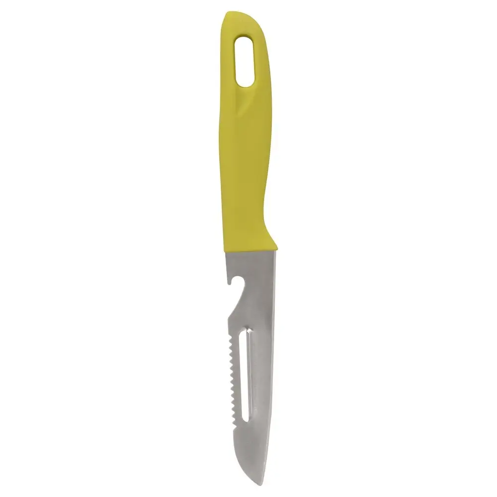 Многофункциональный инструмент включает в себя: нож, овощечистку, рыбочистку, открывалку. Незаменим как на кухне, так и в походе, на пикнике. Перед первым использованием и после каждого применения промыть мягкой щеткой или губкой с жидким моющим средством, сполоснуть и просушить. Можно мыть в посудомоечной машине. Хранить в сухом месте.