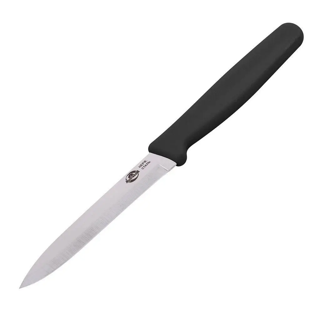Изготовлен: лезвие из коррозионностойкой (нержавеющей) стали, ручка из пластмассы (полипропилен). Общая длина 20 см, длина лезвия 10 см.