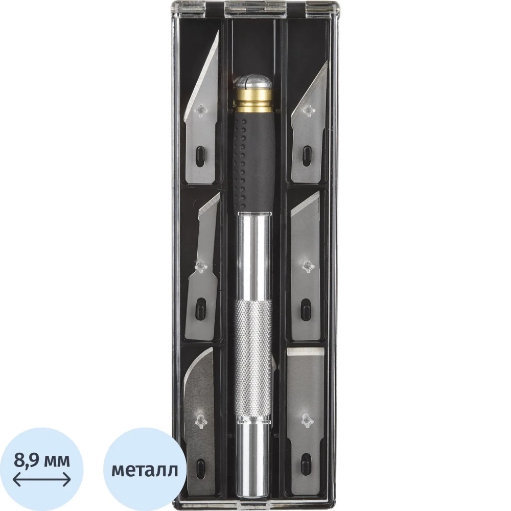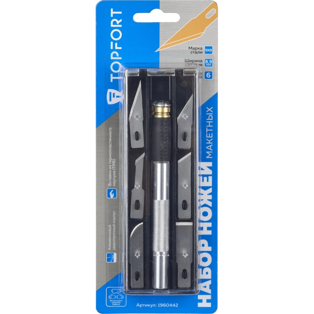 Нож макетный Topfort Набор 7поз:нож мет.+TPR+6 шир.лезв.разн.тип,пласт.бокс