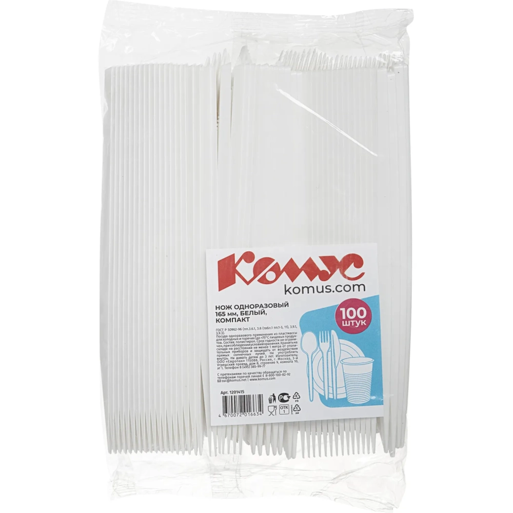 Нож одноразовый 165мм, белый, КОМУС ПС 100шт/уп