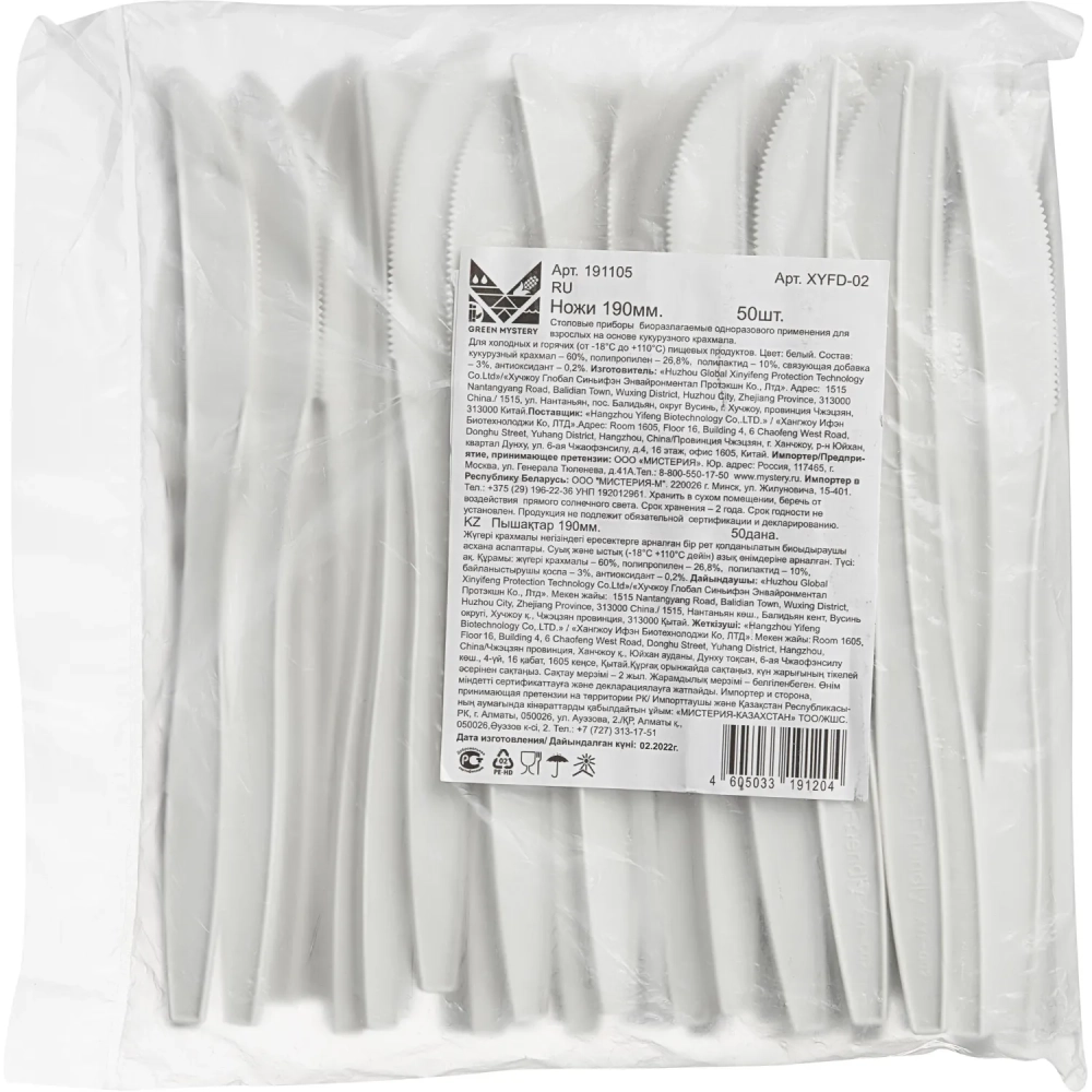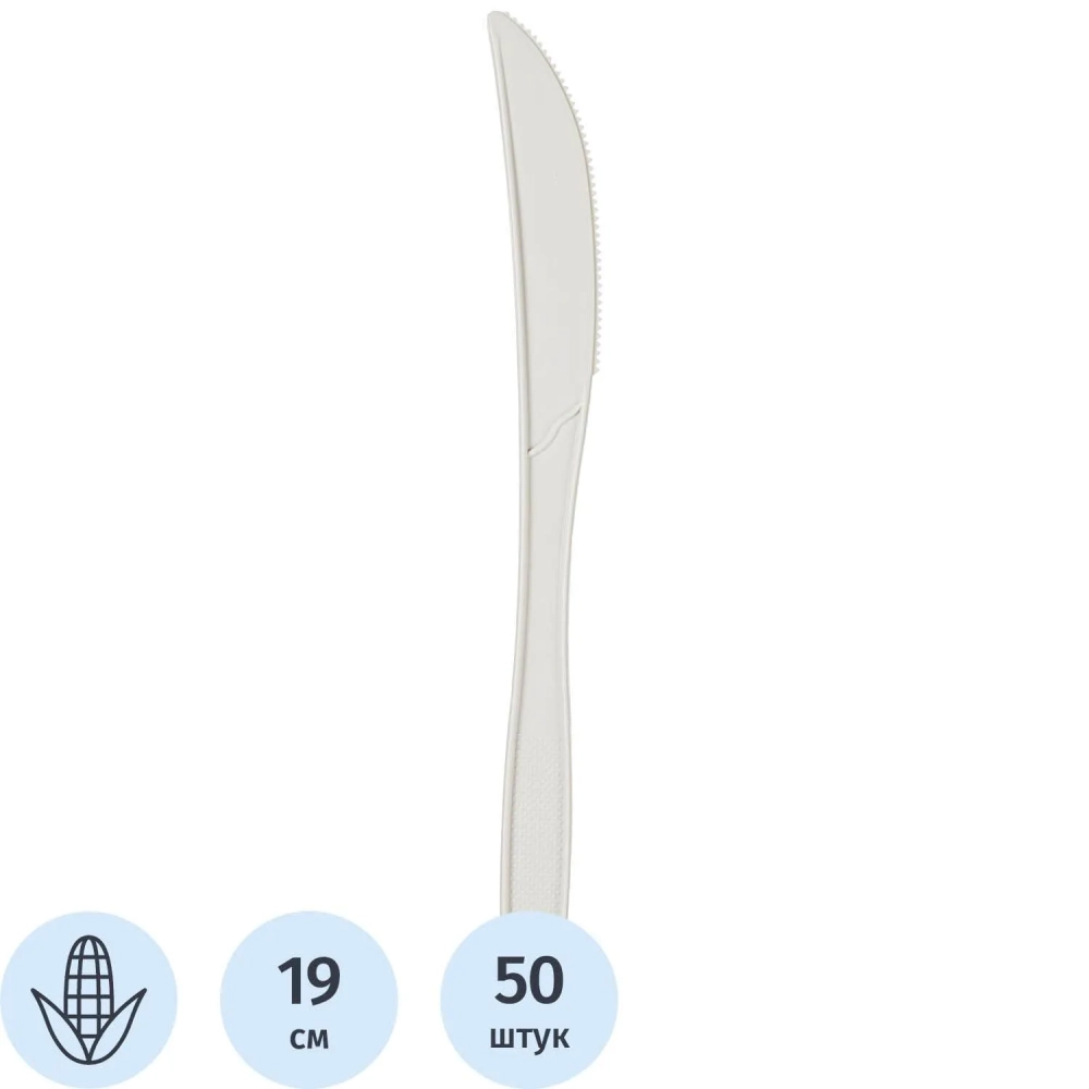 Нож одноразовый 190мм, белый, кукурузный крахмал, 50шт/уп