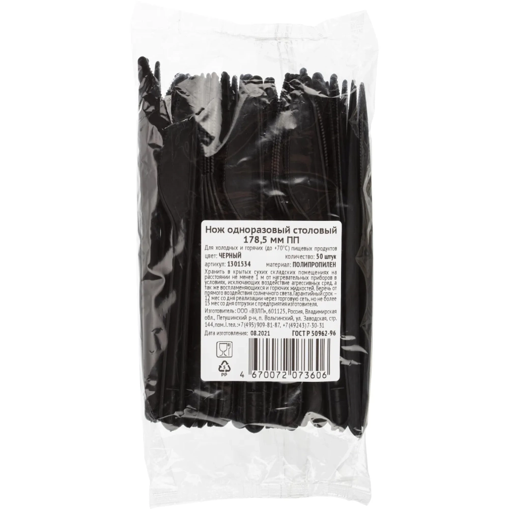 Нож одноразовый столовый 178,5 мм, черный. ПП, 50шт/уп(4031)