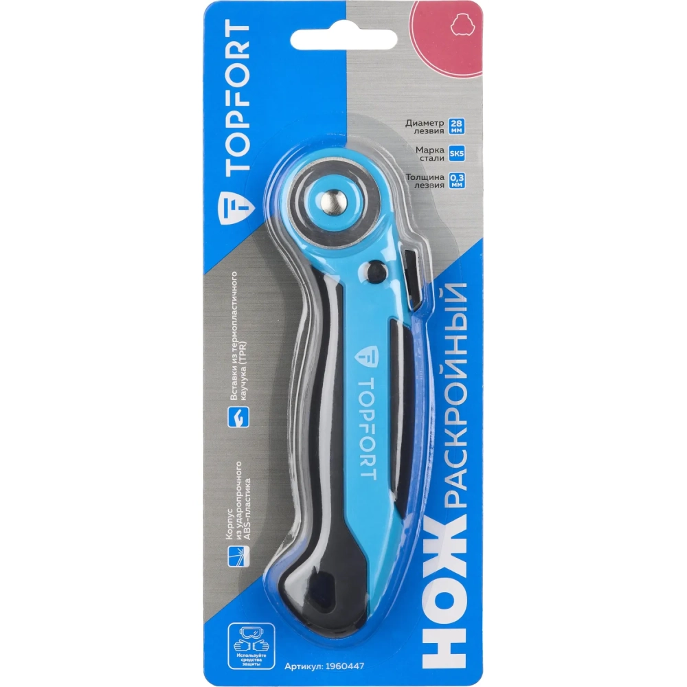Нож раскройный Topfort роликовый, 28мм лезвие,ABS+TPR