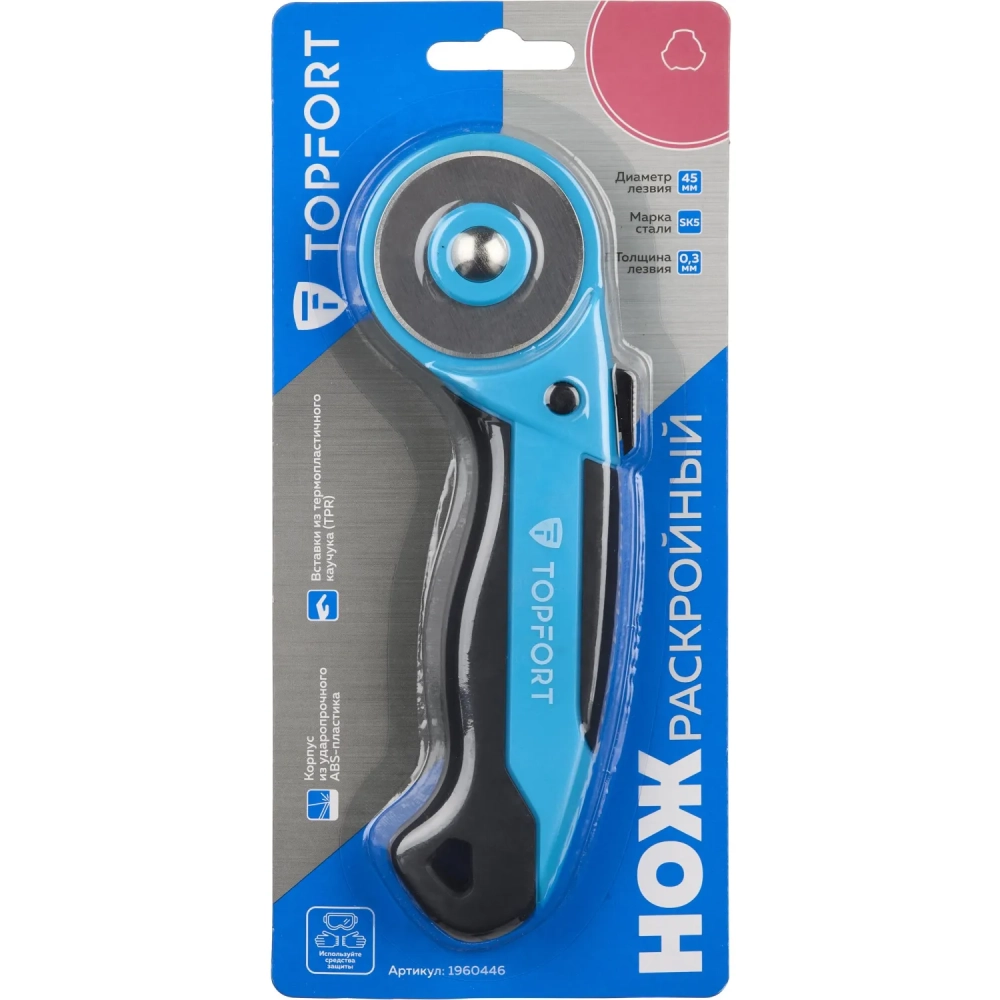 Нож раскройный Topfort роликовый, 45мм лезвие,ABS+TPR
