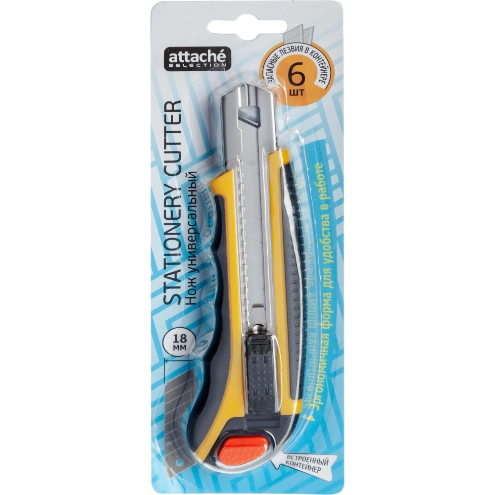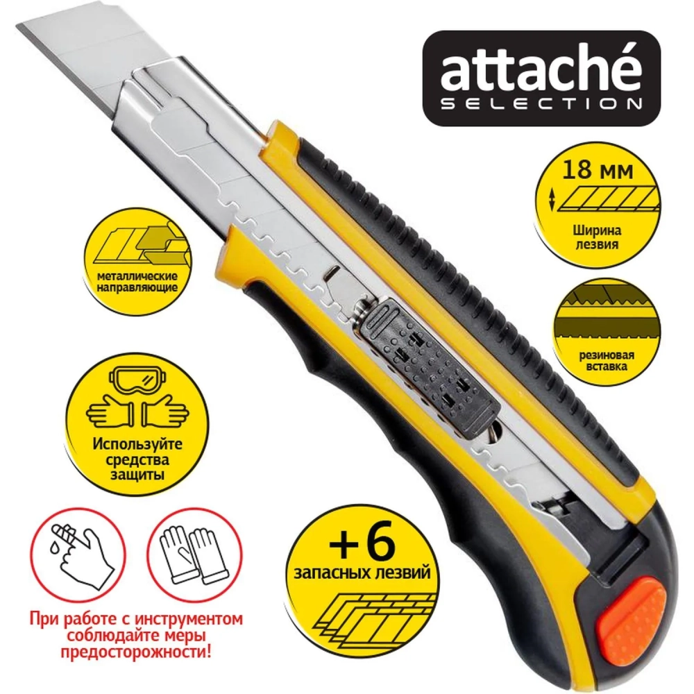 Нож универсальный 18 мм Attache Selection с резин.вставк.+6 зап.лезвий