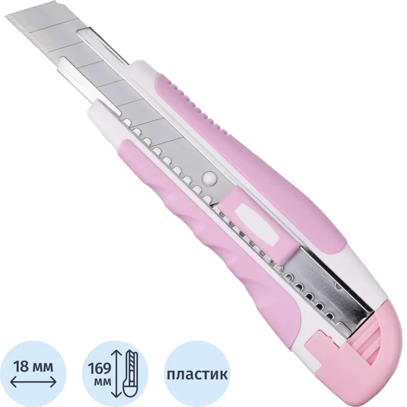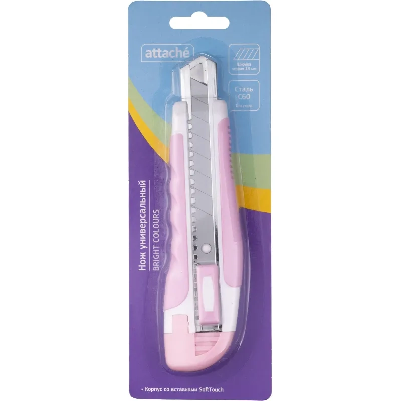 Нож универсальный Attache 18 мм пласт со встав мет направл. роз