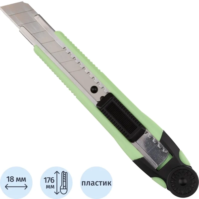 Нож универсальный Attache 18 мм пластиковый мет направл. зелён. авто