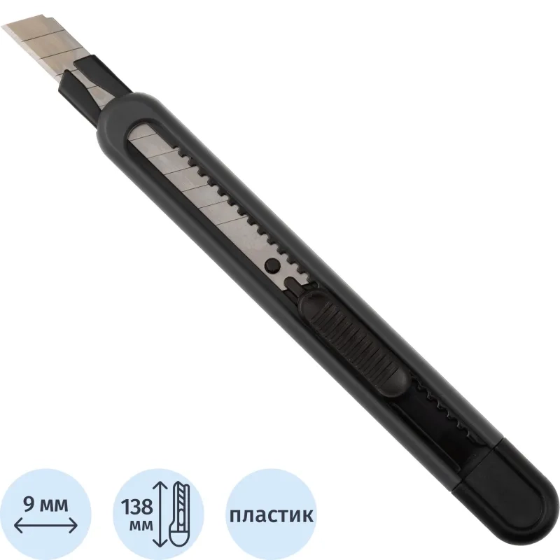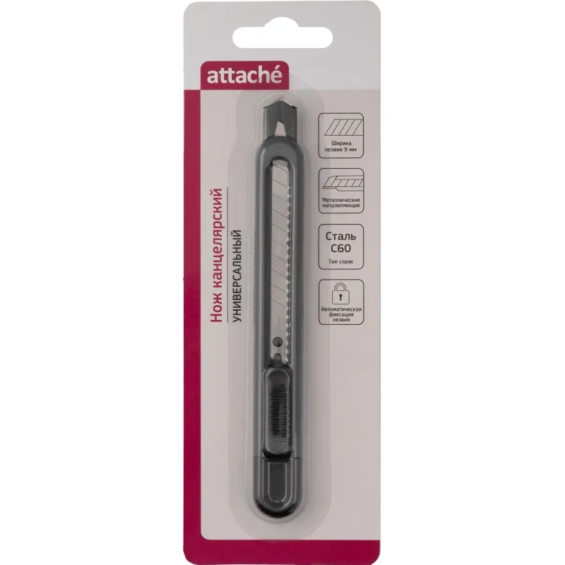 Нож универсальный Attache 9 мм пластиковый мет направл. чёрн. авто