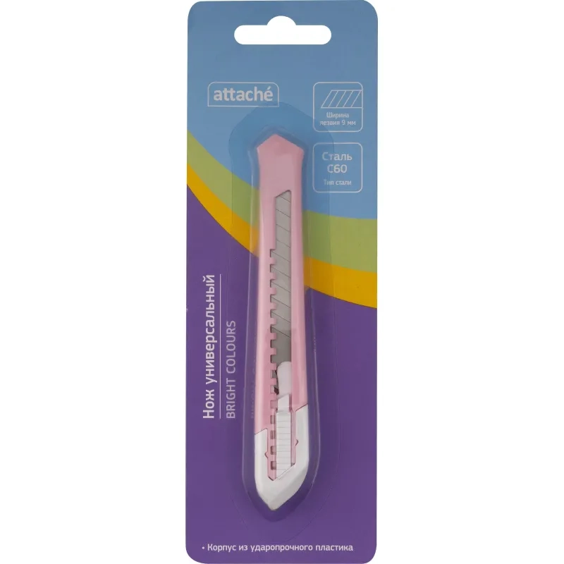 Нож универсальный Attache 9 мм пластиковый роз. авто