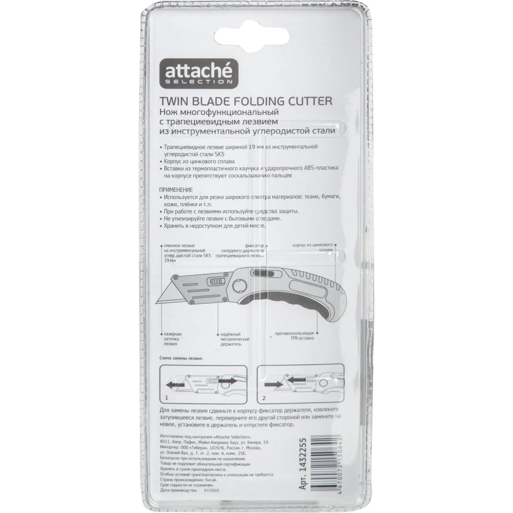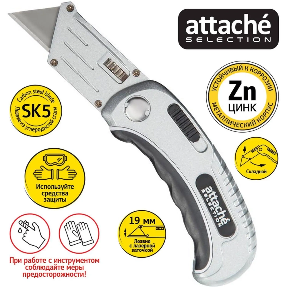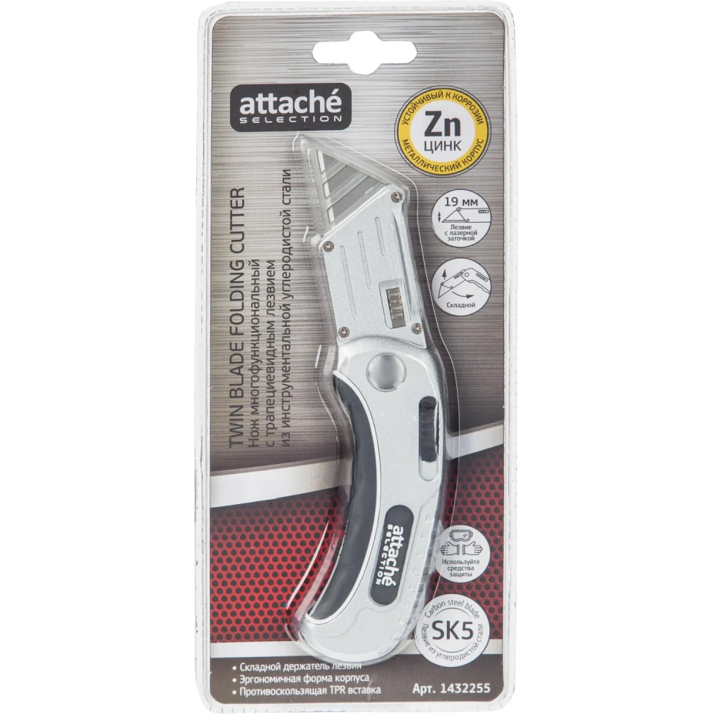 Нож универсальный Attache Selection 19мм,трапец.,ал+цинк.корп.,TPR вставка