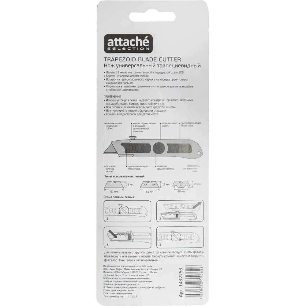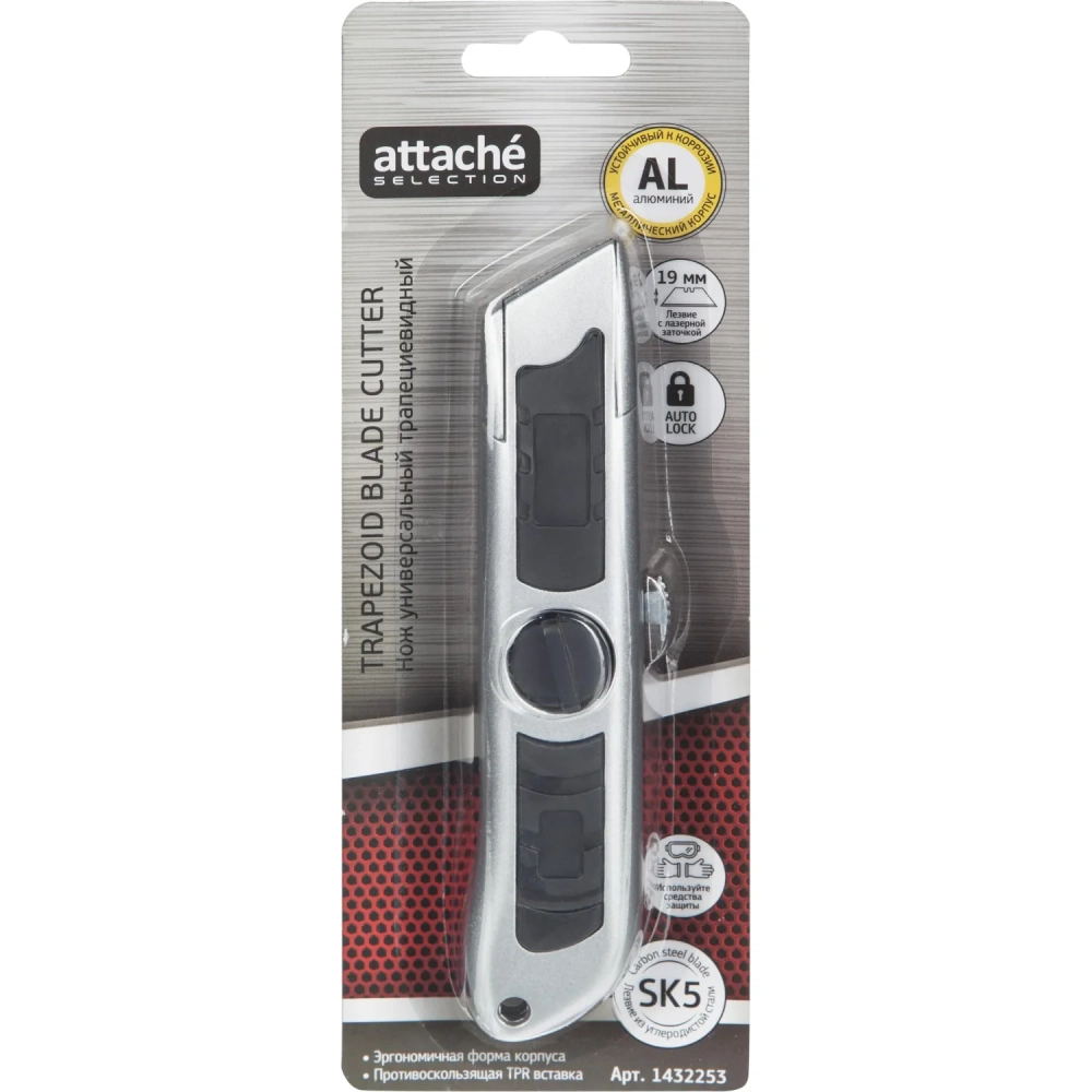 Нож универсальный Attache Selection 19мм выдвижной,трапец.,алюм.корпус