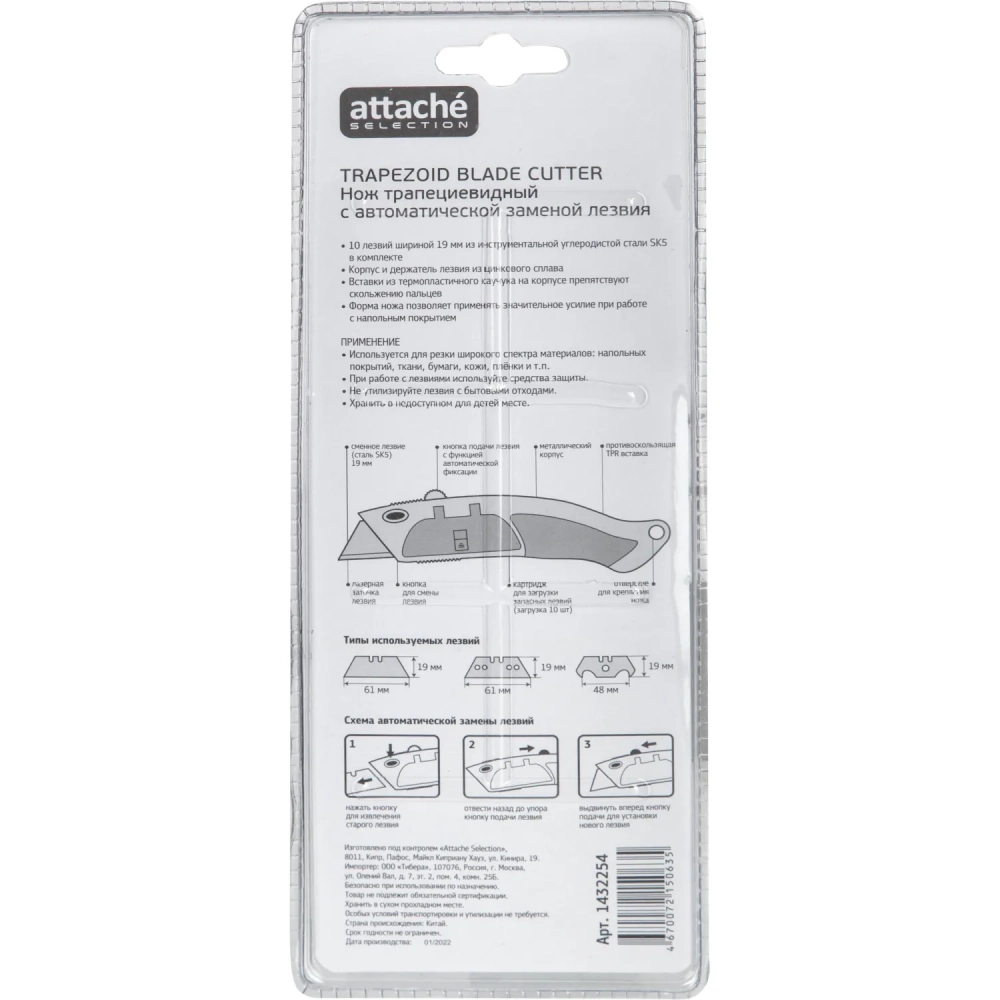 Нож универсальный Attache Selection дельфин 19мм,трапец. + 10шт лезвий