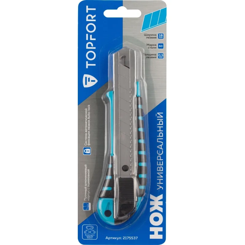 Нож универсальный Topfort 18 мм алюминиевый мет направл
