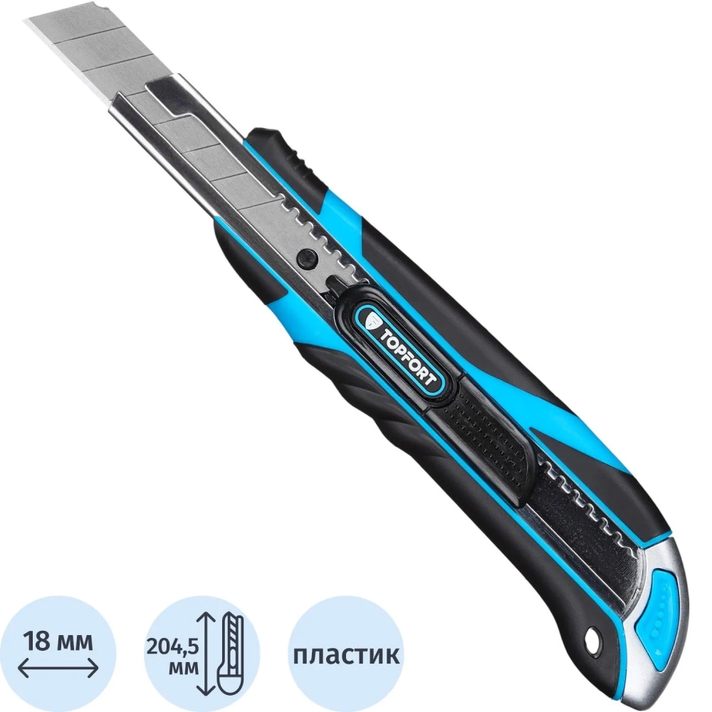 Нож универсальный Topfort 18мм с мет.напр.,дв.сист.выдв.+блок.лезв.,ABS+TPR