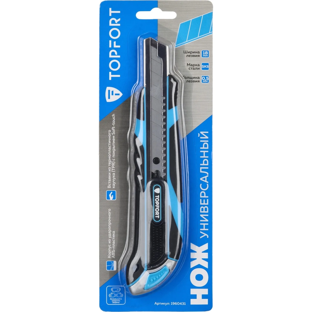 Нож универсальный Topfort 18мм с мет.напр.,дв.сист.выдв.+блок.лезв.,ABS+TPR