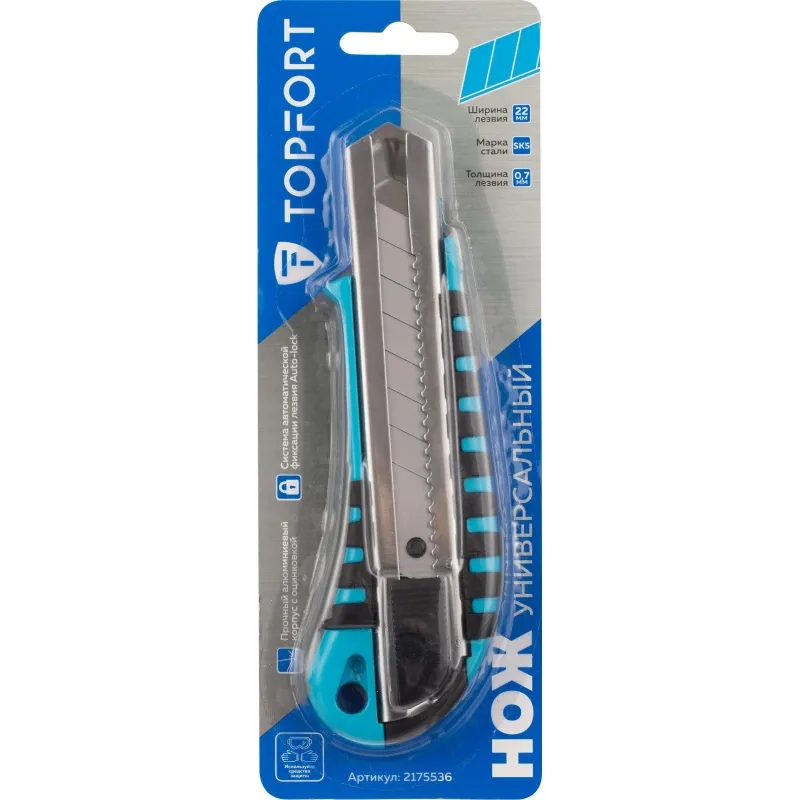 Нож универсальный Topfort 22 мм алюминиевый мет направл