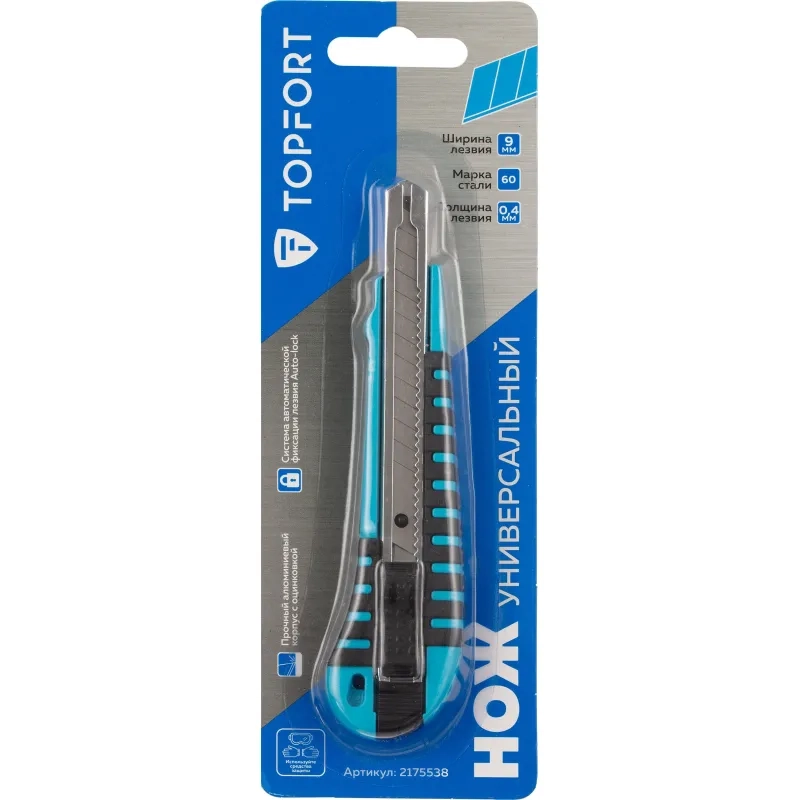 Нож универсальный Topfort 9 мм алюминиевый мет направл