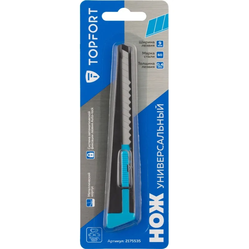 Нож универсальный Topfort 9 мм металлический