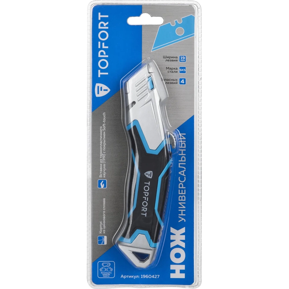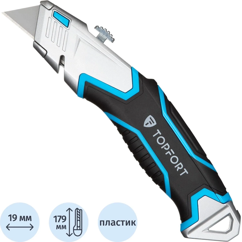Нож универсальный Topfort с выдвиж.лезвием 19мм трапец.+4зап.лезвия