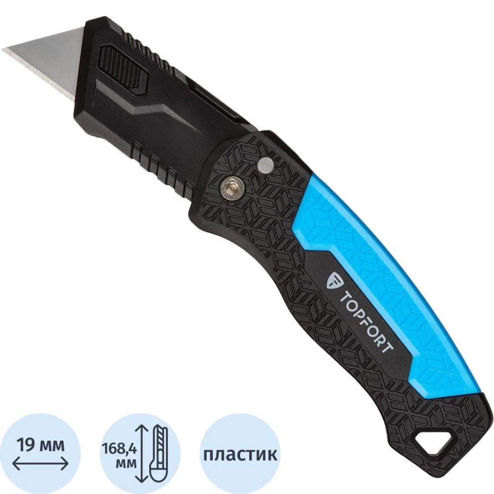 Нож универсальный Topfort складной пластик с выдв.лез. 19мм трап+2зап.лезв