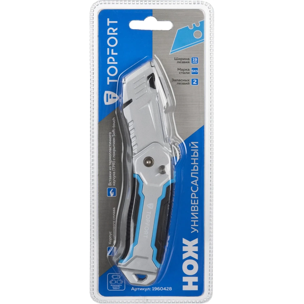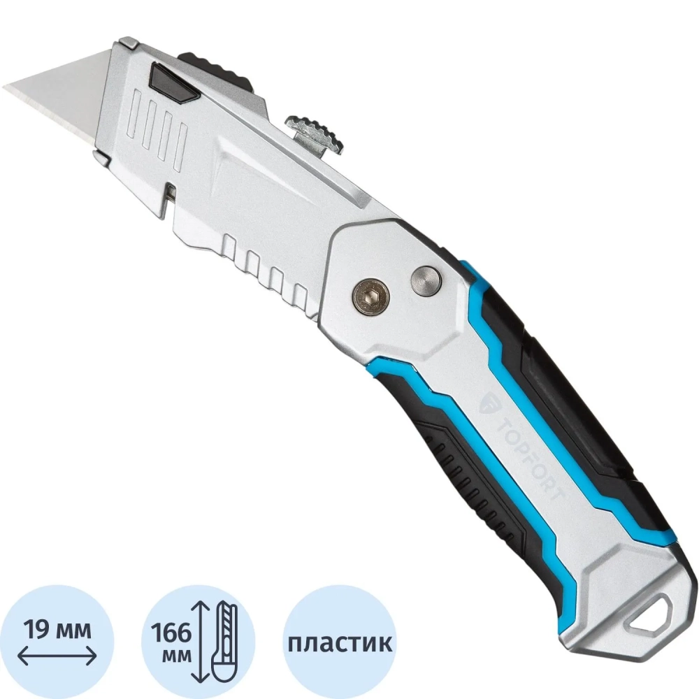 Нож универсальный Topfort складной с выдв.лезв. 19мм трапец.+2зап.лезв