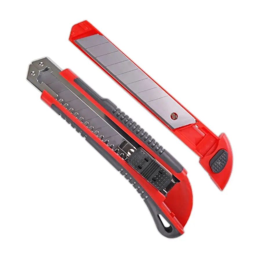 Применяется для разрезания бумаги, картона, линолеума, ковровых покрытий, гипсокартона, пластика, дерева и других материалов. Имеет двухкомпонентный эргономичный корпус, выдвижной отсек для запасных лезвий и систему автозамены лезвия.
