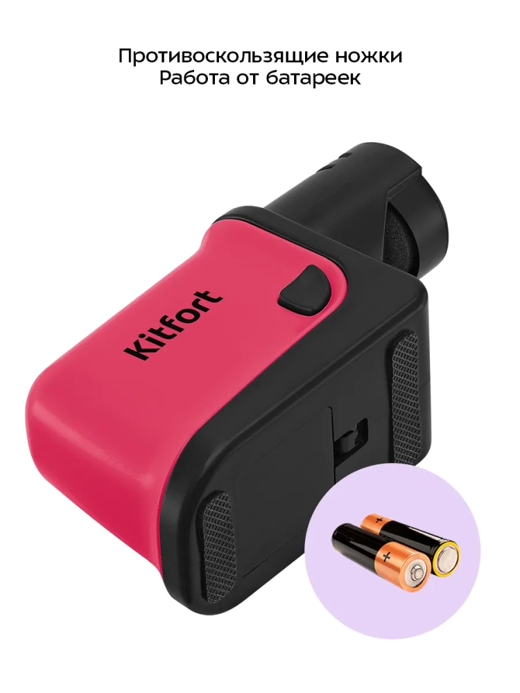 Электрическая ножеточка Kitfort КТ-4099 — это идеальное решение для тех, кто хочет быстро и безопасно заточить ножи с гладкими стальными лезвиями. Это устройство также позволяет заточить ножницы и торцевать отвертки с плоским шлицем. Принцип работы электроточилки прост: при вращении керамического камня в корпусе устройства снимается тонкий слой металла с затачиваемого инструмента, что восстанавливает первоначальную форму лезвия и угол заточки. Эта точилка работает от 4 батареек типоразмера АА, которые не входят в комплект поставки. Благодаря этому вам не придется искать источник питания для включения устройства — оно всегда готово к работе там, где это необходимо. Прорезиненные вставки на дне электроточилки надежно фиксируют её на столе и предотвращают скольжение во время работы. Kitfort КТ-4099 отличается компактностью и легкостью использования, что делает её незаменимой помощницей на кухне или в мастерской. Она подходит как для профессионального использования, так и для домашнего применения. Не упустите возможность приобрести эту универсальную ножеточку по выгодной цене! На нашем сайте вы найдете все актуальные скидки на данную электро модель — следите за обновлениями раздела "скидка" чтобы не пропустить лучшие предложения! Все товары проходят строгий контроль качества перед отправкой покупателю. С помощью этой электрической точилки ваши ножи всегда будут острыми без лишних усилий!