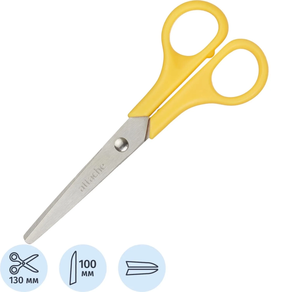 Ножницы Attache 130 мм с пластиковыми ручками, цвет желтый