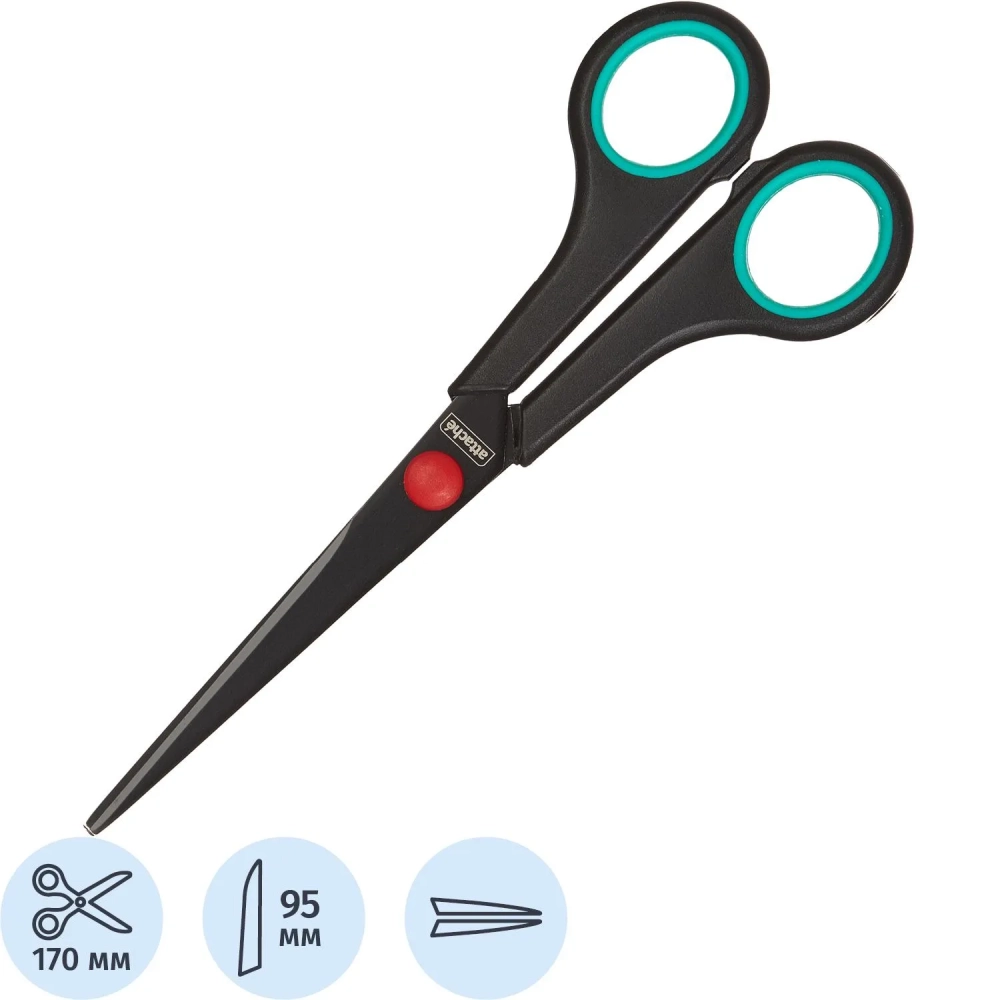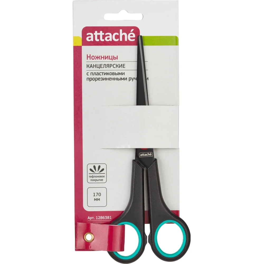 Ножницы Attache 170 мм с пласт. прорезин. ручками, тефл.покр.цв.черн/красн