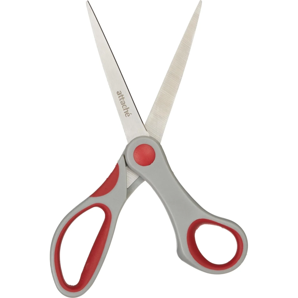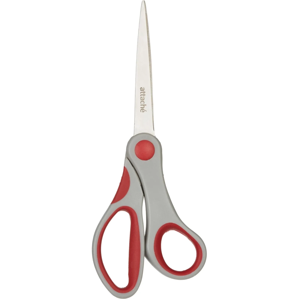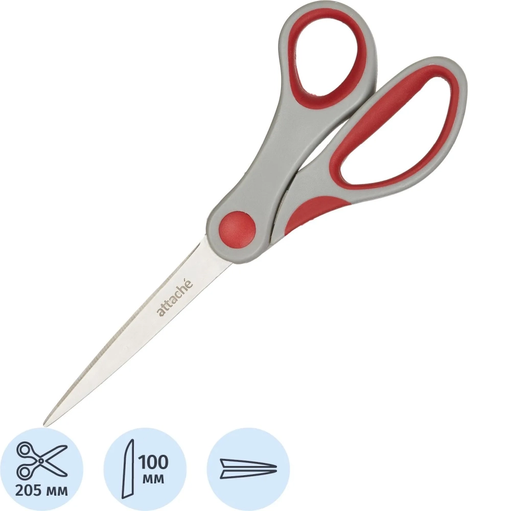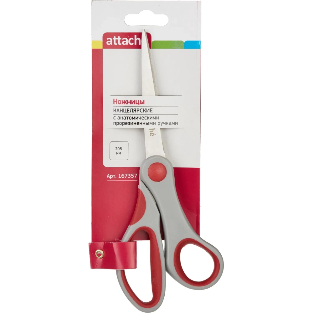 Ножницы Attache 205 мм,пласт.прорезин.анатомич. ручки,красн/серый