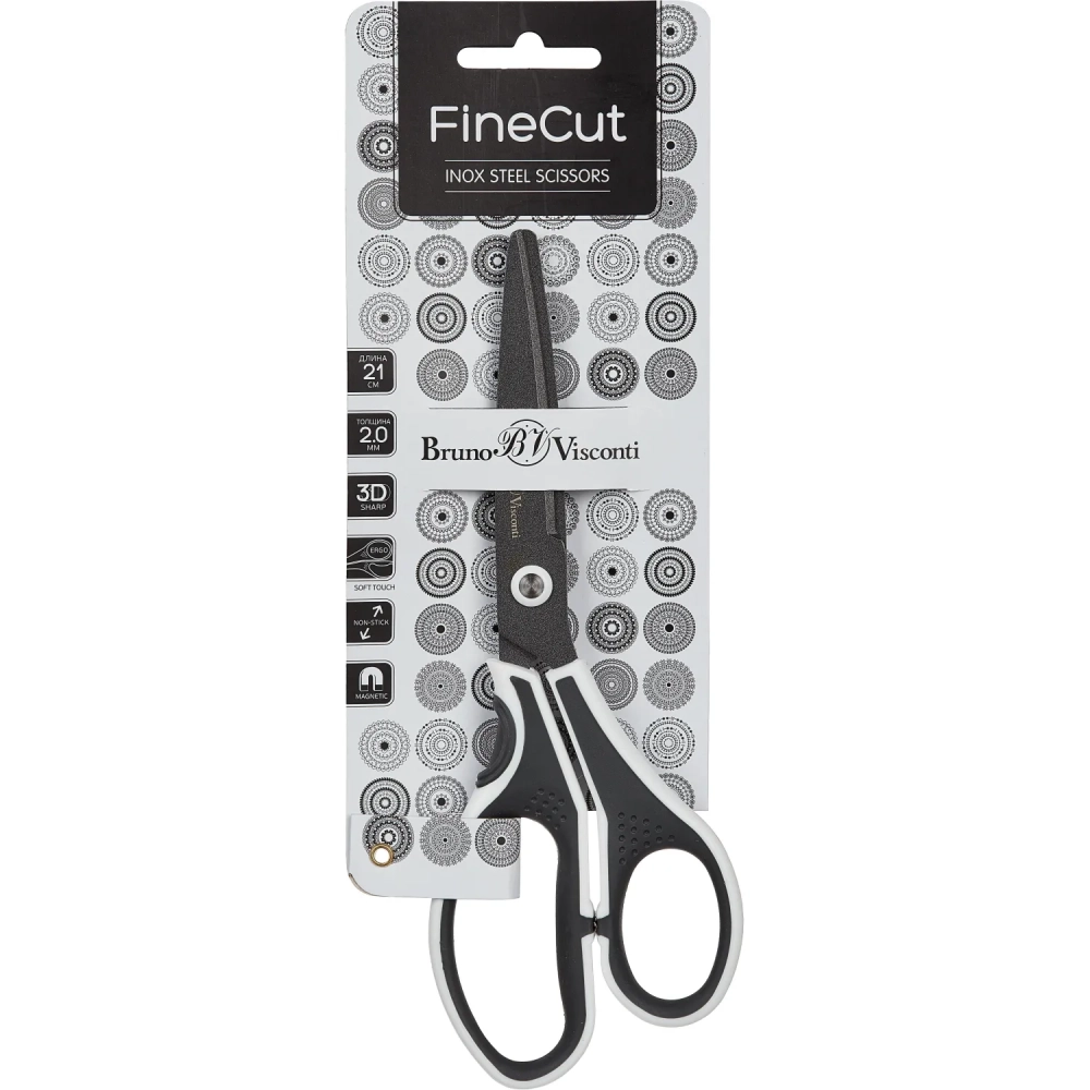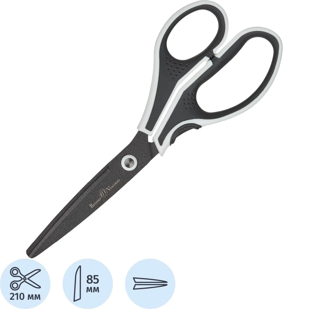 Ножницы Bruno Visconti FINECUT 210мм, тефл.покр,прорезин. ручки,ч/б,60-0026