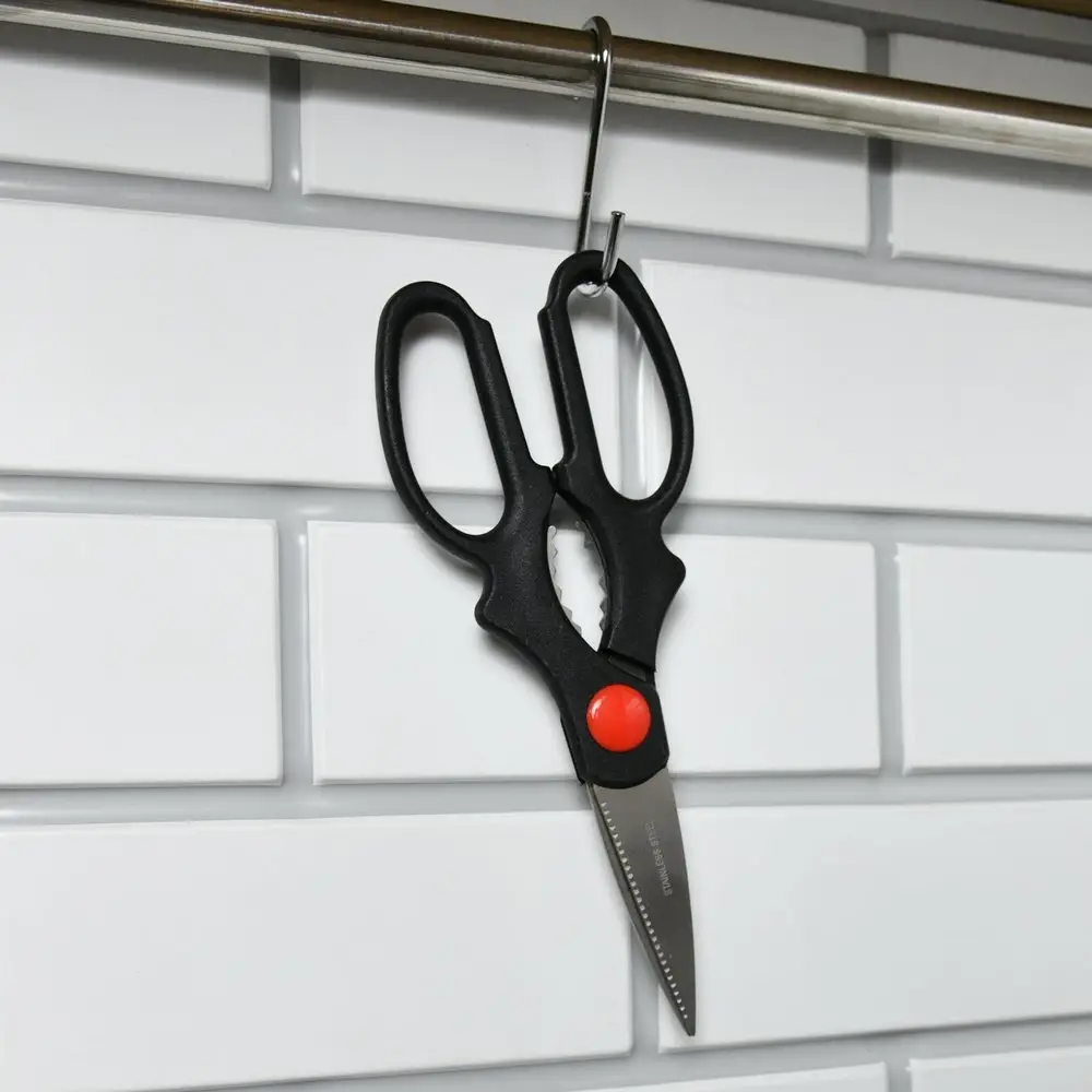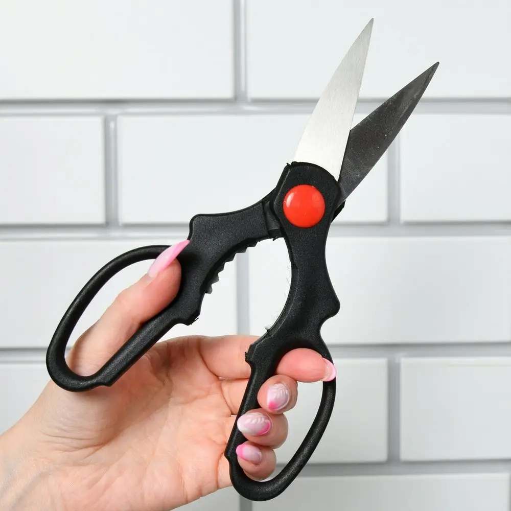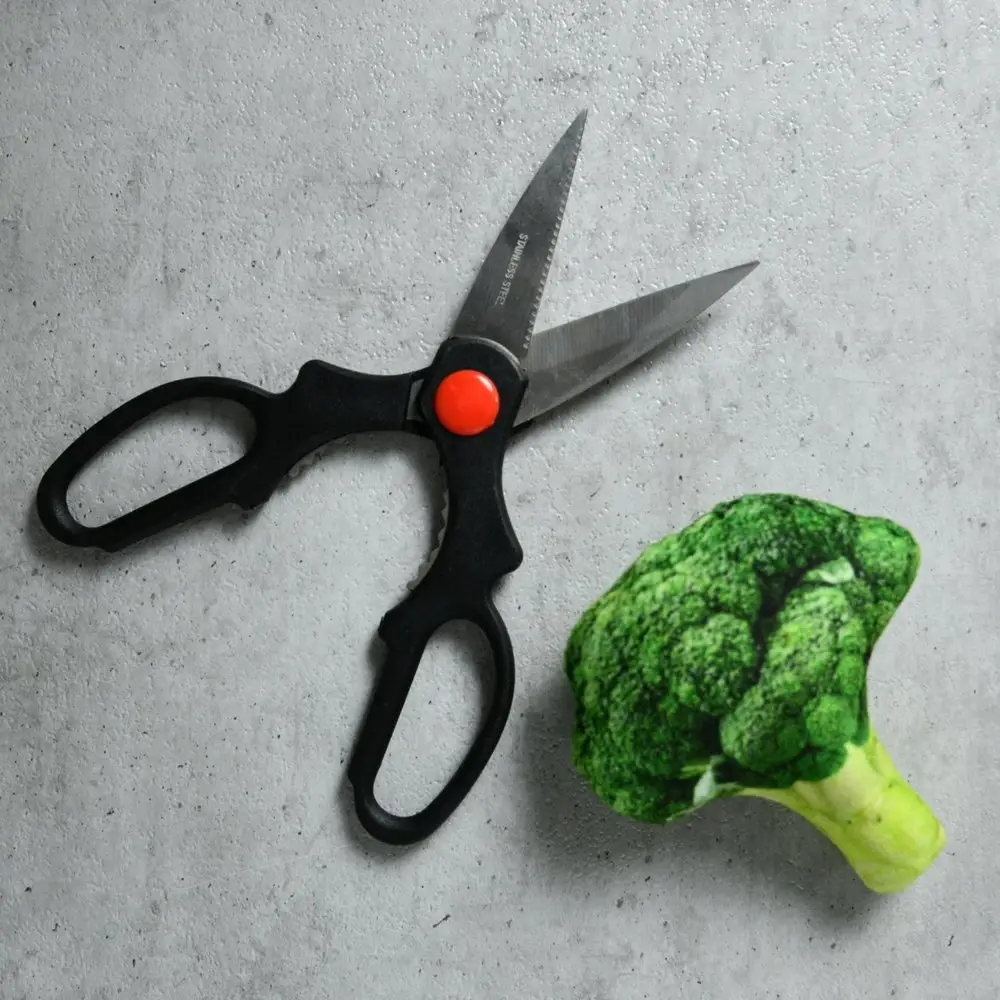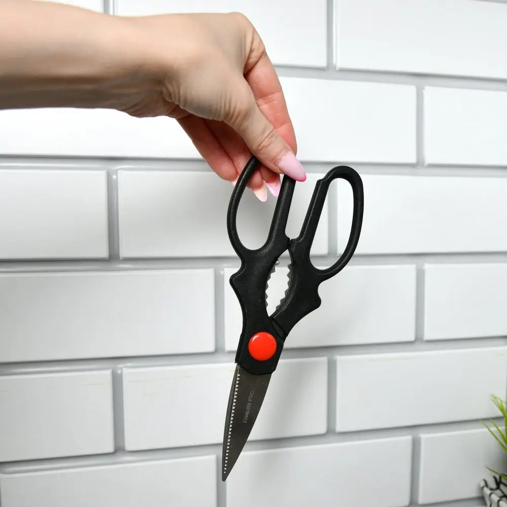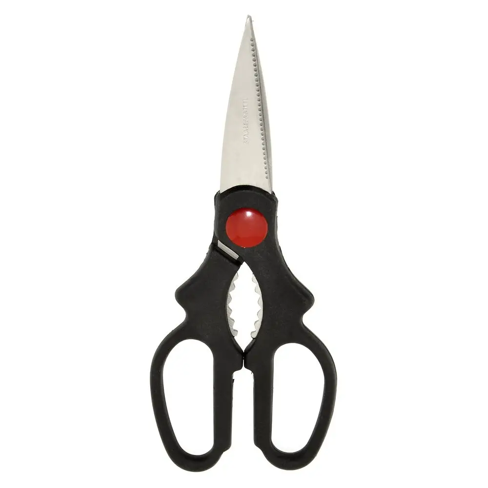 Приготовление некоторых блюд требует аккуратности и особой сноровки. Чтобы подготовить некоторые ингредиенты, потребуется специальный инструмент – ножницы для разделки продуктов. С этим инструментом вы легко справитесь с кожей, мелкими косточками, плавниками, порежете зелень и вскроете практически любую упаковку из картона или пленки. Зубчики, расположенные между ручками, помогут с открыванием крышек и раскалыванием ореховой скорлупы. Рабочая часть изготовлена из нержавеющей стали, для отделки ручек использована пластмасса (полипропилен). После применения тщательно промойте изделие с моющими средствами и высушите.