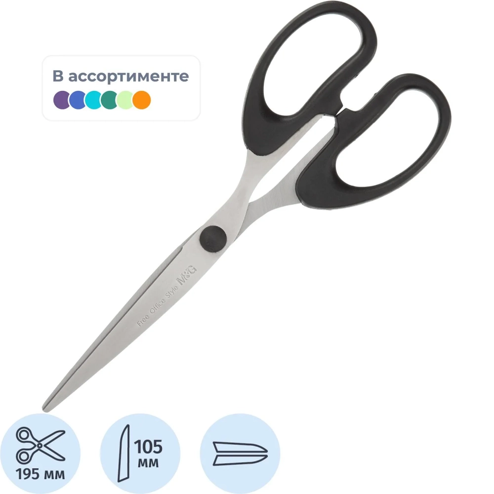 Ножницы канцелярские M&G, 195 мм, нержавеющая сталь, цвет в ассорт